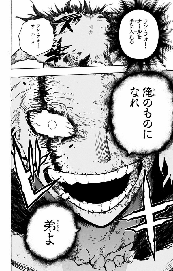 僕のヒーローアカデミア 25 さっきまでの割れるような頭の痛さは消えた…。ああ…思い出した…。ガキの頃に初めて感じた快感。俺にとって家族との記憶は悲劇なんかじゃない。こんなヒーロー溢れる社会も、未来も要らない…全部ぶっ壊れろよ!!