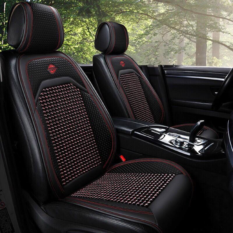 Bộ áo ghế ô tô lót liền hạt gỗ da cao cấp phủ 1 ghế trước, có đan hạt gỗ chống nóng, massage lưng