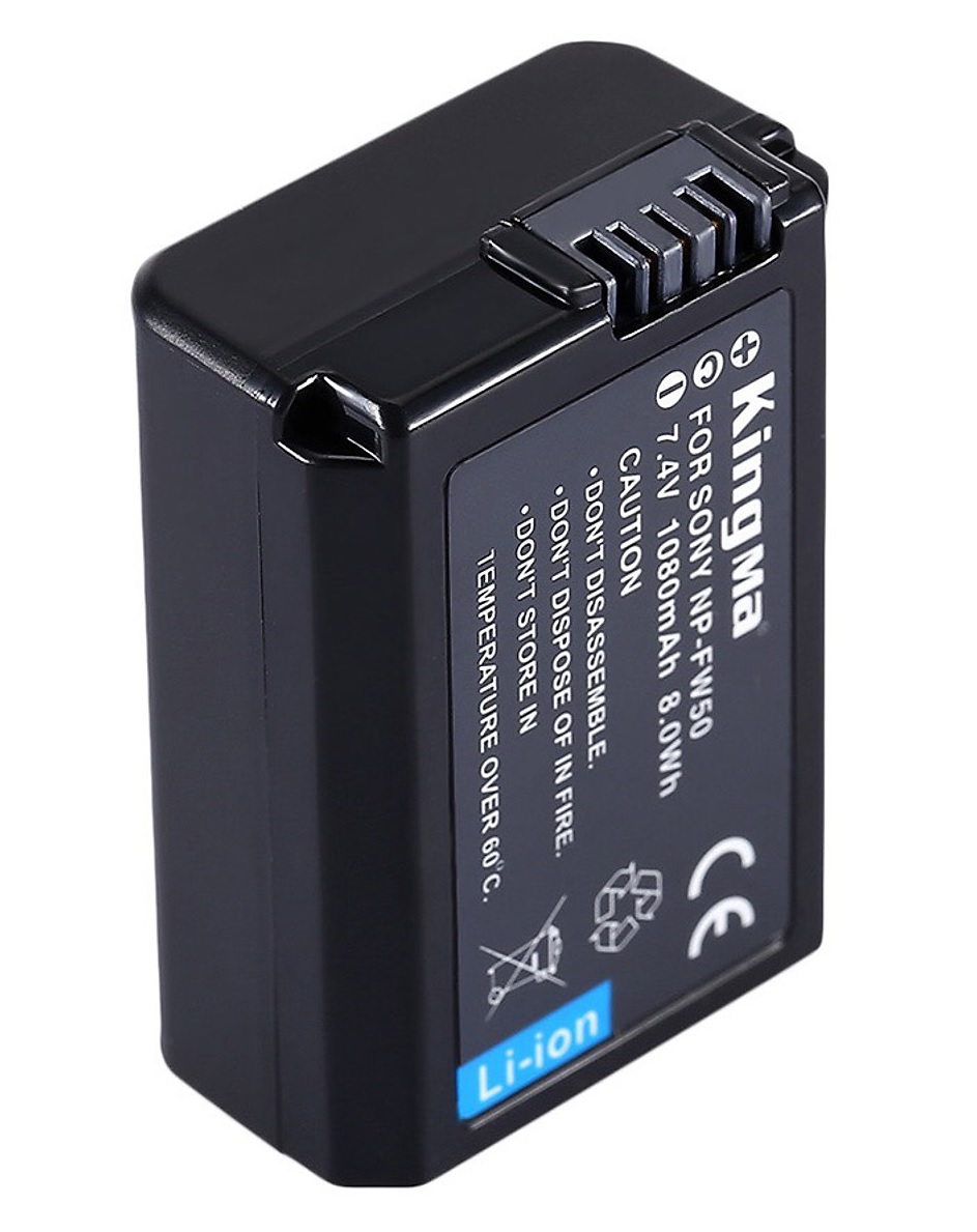Pin máy ảnh Kingma cho Sony NP-FW50 Thông tin sản phẩm: Pin Kingma for Sony NP-FW50 -Model: NP-FW50; -Điện áp 7.4V; -Công suất: 1080mAh 8.0Wh; -Loại pin: Pin Li-ion; -Kích thước: 45 * 31,9 *