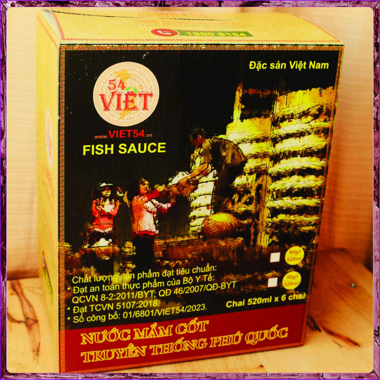 Sản phẩm chính hãng của Công ty VIỆT 54 - VIET 54. Nước mắm cốt 30 độ đạm, sản xuất theo phương pháp ủ chượp thùng gỗ truyền thống Phú Quốc – Đặc sản Việt