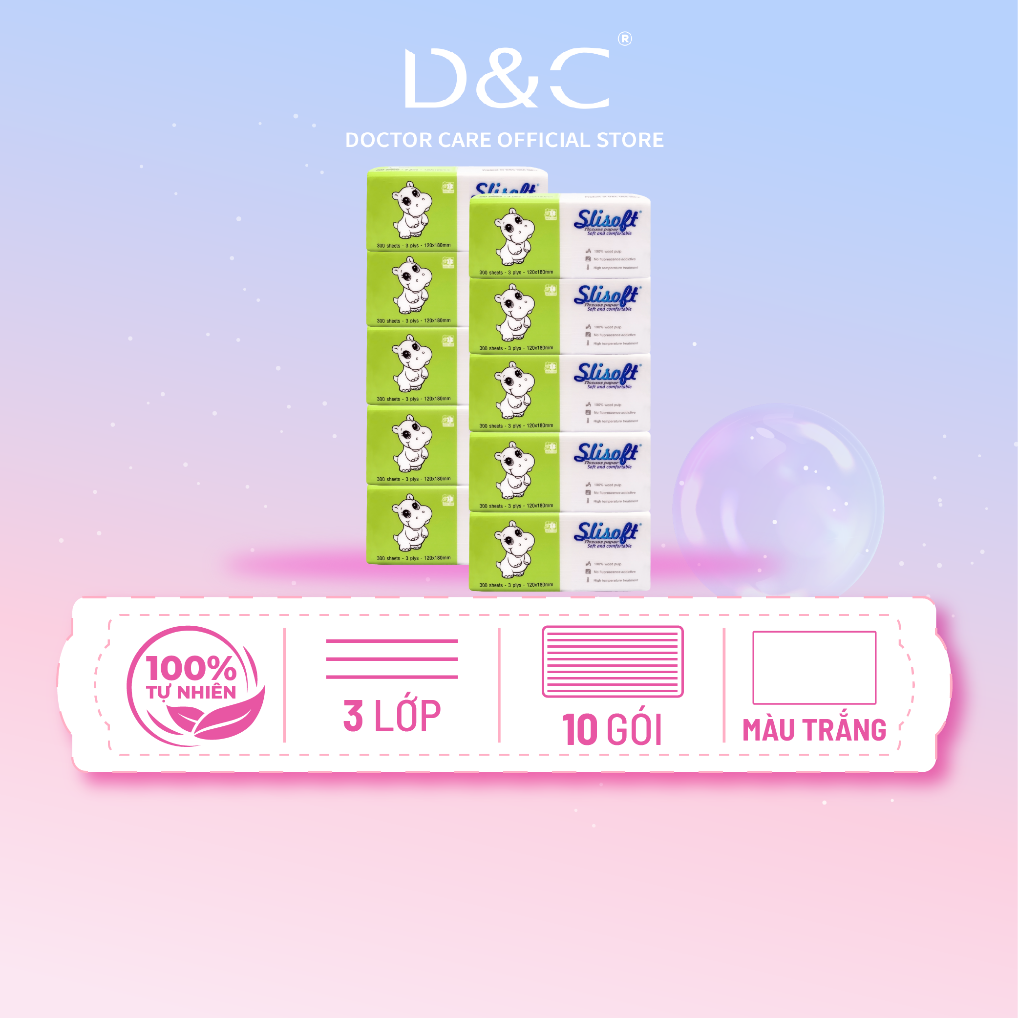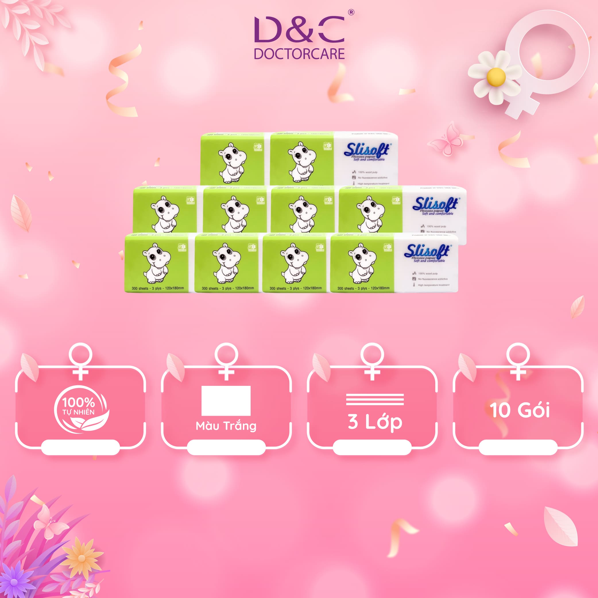 ✨10 Bịch Giấy ăn Slisoft Trắng 3 lớp x 100 tờ đa năng,khăn giấy rút không chất tẩy trắng an toàn cho cả gia đình