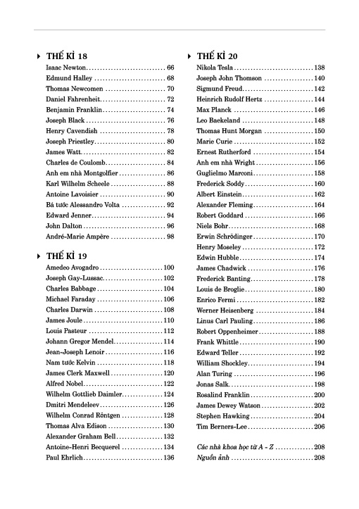 Mua tại TiktokCuộc sống hiện đại ngày nay được lấp đầy bởi vô vàn sản phẩm của trí tuệ và khoa học. Chính những sản phẩm ấy cùng các phương pháp khoa học đã tạo nên cuộc cách mạng làm thay đổi cả thế giới. Tuy nhiên, để làm được điều đó phải kể đến những nhà khoa học xuất sắc, những người đã cống hiến không ngừng cho sự phát triển của nhân loại. Nhằm giúp mọi người có thêm hiểu biết về những con người vĩ đại này, tác giả Jon Balchin đã cho ra đời cuốn sách 100 nhà khoa học vĩ đại thay đổi thế giới. Trong cuốn sách này, Jon Balchin đã giới thiệu một cách ngắn gọn nhưng đầy đủ, dễ nhớ về tiểu sử cùng những thành tựu tiêu biểu nhất của 100 “người khổng lồ” có tầm ảnh hưởng trên thế giới. Với những nỗ lực không ngừng nghỉ trong lĩnh vực khoa học (từ vũ trụ học của Copernicus và Galileo đến nhiều cuộc cách mạng thời Trung Cổ của Hippocrates và Galen, hay câu chuyện của anh em nhà Wright, nhà nữ khoa học – người tiên phong chất phóng xạ Marie Curie và thiên tài Vật lý Albert Einstein, Stephen Hawking…), tác giả đã khai thác rất nhiều lĩnh vực quan trọng trong cuộc sống như vật lý, sinh học, hóa học và gen. Mỗi lĩnh vực gồm nhiều phát hiện thú vị, chẳng hạn như khám phá về hình học (Euclid), máy in (Gutenberg), kính viễn vọng (Galileo), thuốc nổ (Alfred Nobel), điện thoại (Alexander Graham Bell), phân tâm học (Freud), radium (Marie Curie) và penicillin (Alexander Fleming)… Mỗi nhà khoa học trong cuốn sách được giới thiệu thông qua 3 ý chính: Mốc sự kiện/Ghi chú về ngày tháng: Tóm tắt những dấu mốc quan trọng trong cuộc đời nghiên cứu của mỗi nhà khoa học/cặp đôi nhà khoa học. Nội dung:giới thiệu qua về tiểu sử/câu chuyện cá nhân, quá trình khám phá, tầm quan trọng trong những khám phá tiêu biểu nhất của họ và nêu lên tầm ảnh hưởng của những khám phá đó đối với thế giới. Di sản/Ảnh hưởng:cung cấp thêm những thông tin bổ sung về nhà khoa học được nhắc đến. Đan xen giữa các thông tin trên là những câu chuyện đầy thú vị và gây tò mò về sự đột phá khoa học. Thông qua đó, bạn đọc có thể thấy rằng những nhà khoa học dù phải chịu sự hoài nghi và những chỉ trích đầy khắc nghiệt, nhưng vẫn vươn lên và thành công, xóa mờ các đường biên giới giới hạn kho tri thức của nhân loại. Với bố cục được trình bày theo trình tự thời gian, hình ảnh sinh động và nội dung dễ hiểu, 100 nhà khoa học vĩ đại thay đổi thế giới là cuốn sách vừa để giải trí, vừa cung cấp những thông tin vô cùng thiết thực cho độc giả trong độ tuổi 10+. Có thể nói, cuốn sách là câu chuyện về những sáng kiến đã định hình thế giới ngày nay và những ý tưởng sẽ định hình tương lai của toàn nhân loại sau này.