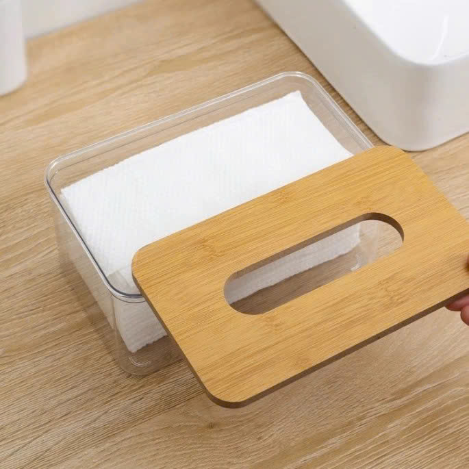 Hộp Đựng Giấy Ăn Khăn Giấy Nhựa MiKa Trong Suốt Nắp Gỗ Tre Tự Nhiên Màu Sắc Kiểu Dáng Phong Cách Bắc Âu