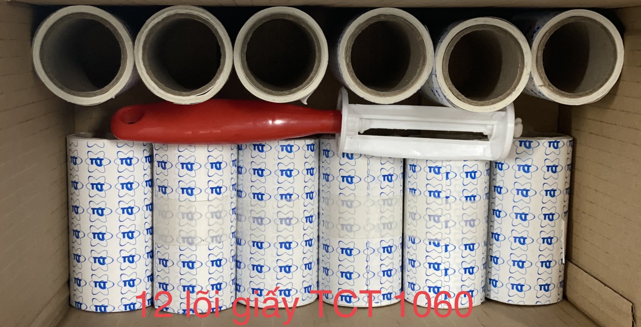6 lõi giấy thay thế TCT 1060: lõi giấy 10cm, 60 lớp - Cây lăn bụi làm sạch: bụi, tóc, sợi vải thừa, lông chó mèo, rác… Hướng dẫn sử dụng: Dùng cuộn lăn bụi lăn trực tiếp trên bề mặt muốn vệ sinh. Sau khi lăn, bóc bỏ lớp đã sử dụng.
