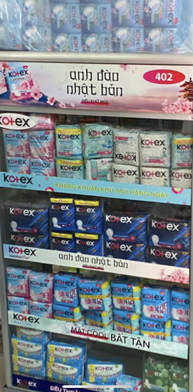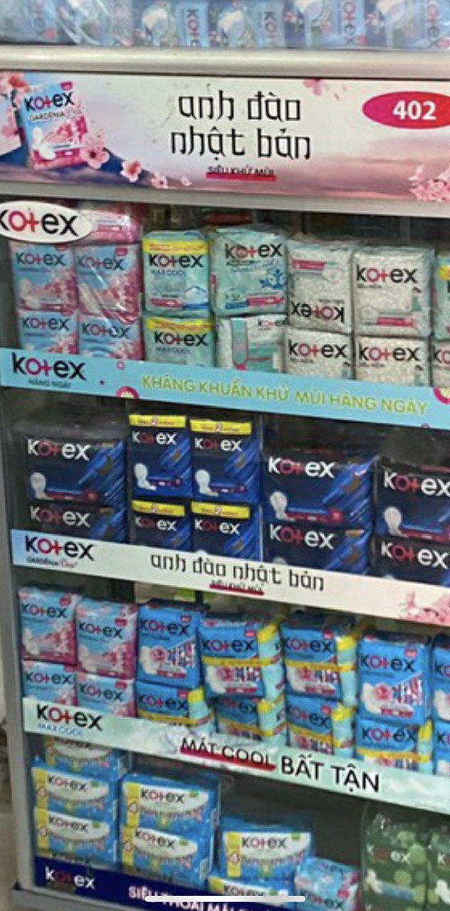 - Thành phần: Vải không dệt, Màng vải in trung chuyển, Bông cellulose, Hạt siêu thấm hút, Polyolefin, Thun, Giấy không dính, silicon, Keo kết dính, Mùi hương - Kotex Siêu Ban Đêm 35cm -