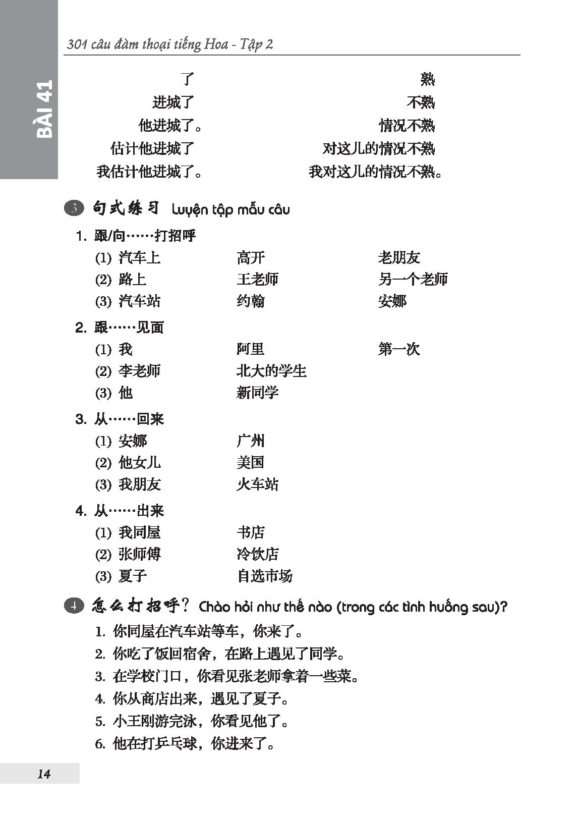 Giáo trình tiếng Trung Giao tiếp tổng hợp dành cho người Việt Nam Cuốn sách Giáo Trình Tiếng Trung Giao Tiếp Tổng Hợp Dành Cho Người Việt Nam có 15 bài, mỗi bài gồm: