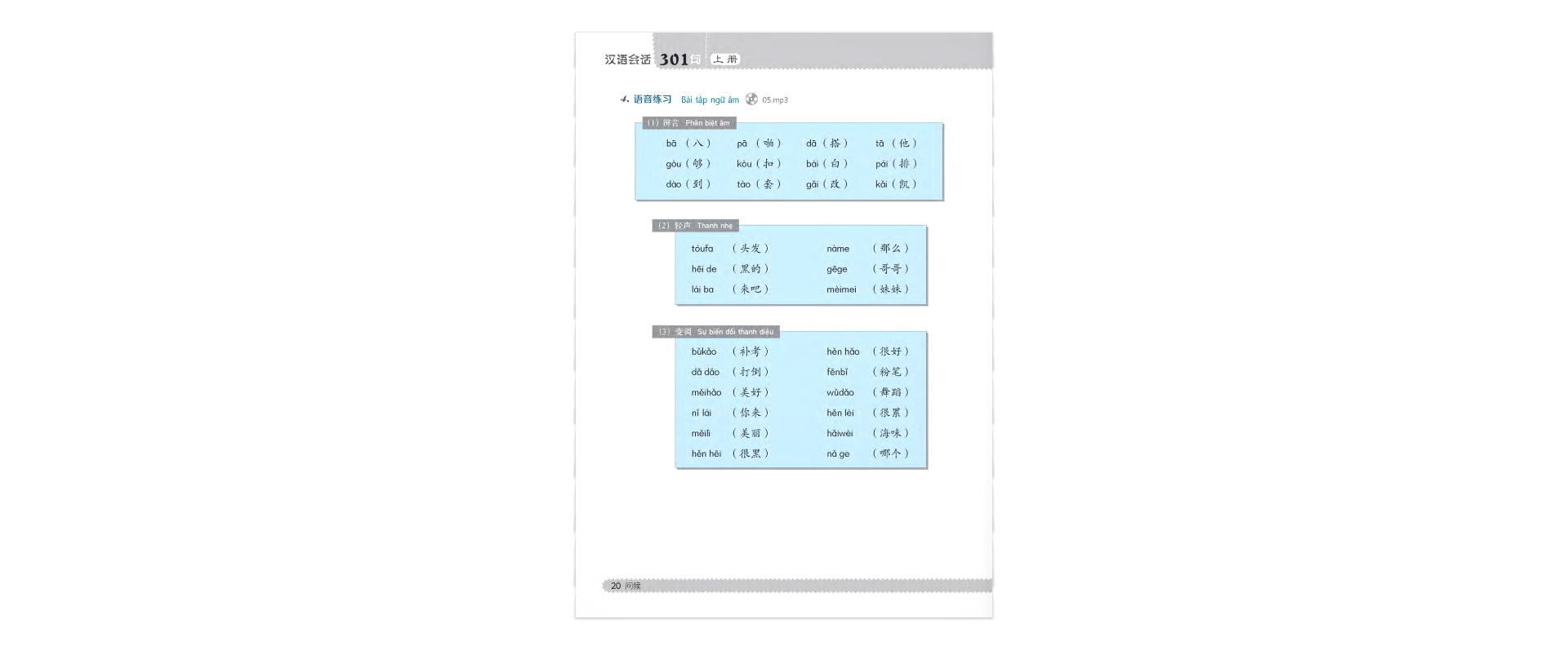 301 câu đàm thoại tiếng Trung Quốc là giáo trình dạy tiếng Trung Quốc cấp tốc được biên soạn dành cho những người mới học ngôn ngữ này. Giáo trình gồm tổng cộng 40 bài học