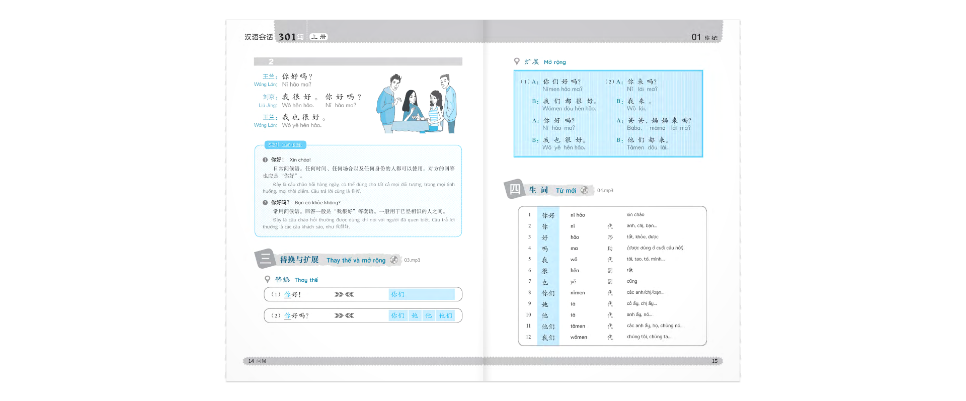 Giáo trình tiếng Trung Giao tiếp tổng hợp dành cho người Việt Nam Cuốn sách Giáo Trình Tiếng Trung Giao Tiếp Tổng Hợp Dành Cho Người Việt Nam có 15 bài, mỗi bài gồm:
