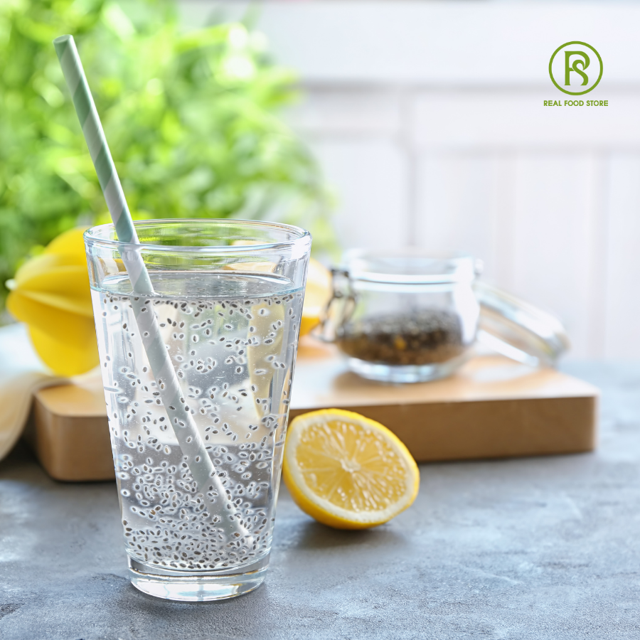 - Cho 10g-20g hạt chia Hữu cơ Real Food vào 200ml nước nóng trong 10 phút. Khuấy đều và thưởng thức.