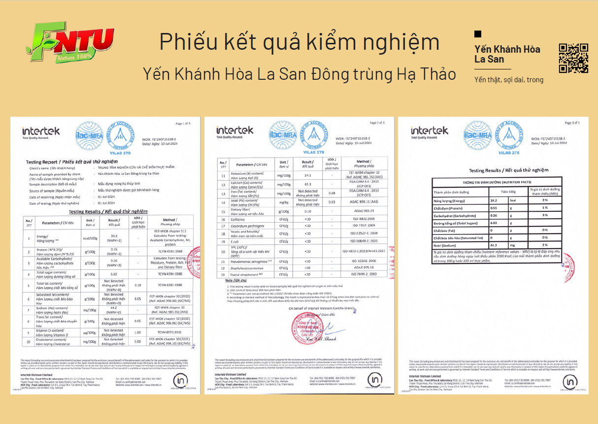 Yến Khánh Hòa La San Đông Trùng Hạ Thảo: được chế biến theo phương pháp truyền thống, kết hợp với công nghệ hiện đại trên dây chuyền thiết bị tiên tiến từ châu Âu. Điều này không chỉ giữ trọn vẹn hương vị tự nhiên mà còn bảo toàn tối đa các dưỡng chất quý giá có trong yến.