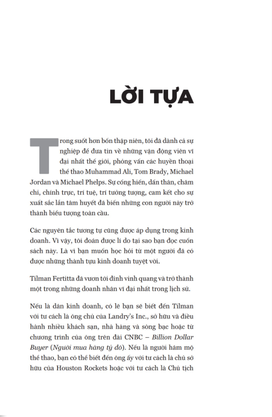 Tilman Fertitta là môt doanh nhân xuất sắc toàn diện và được xem là lãnh đạo thế giới trong nền công nghiệp nhà hàng, khách sạn, giải trí và cờ bạc. Forbes gọi ông là “chủ nhà hàng giàu có nhất trên thế giới.” Fertitta là ngôi sao trong chương trình truyền hình thực tế của riêng mình trên kênh CNBC, Bi/ion Doliar Buyer, và cũng là chủ sở hữu duy nhất của công ty Fertitta Entertainment, quản lý chuỗi nhà hàng Landry's không lồ, sòng bạc Golden Nugget và chuỗi khách sạn, đội bóng rỗ Houston Rockets thí đấu tại giải bóng rỗ nhà nghề nước Mỹ NBA.