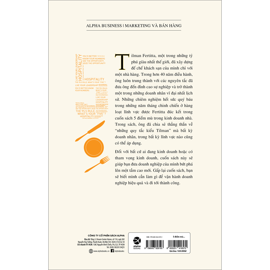 Tại sao nhà hàng của bạn không thế thu hút nhiều thực khách hơn? Tại sao đoanh nghiệp của bạn không thể đứng vững trước khó khăn? Làm thế nào để công ty của bạn tạo được sự khác biệt so với đối thủ? 5 điểm mù trong Kinh doanh sẽ đưa ra câu trả lời xác đáng cho những trăn trở muôn thuở đó.