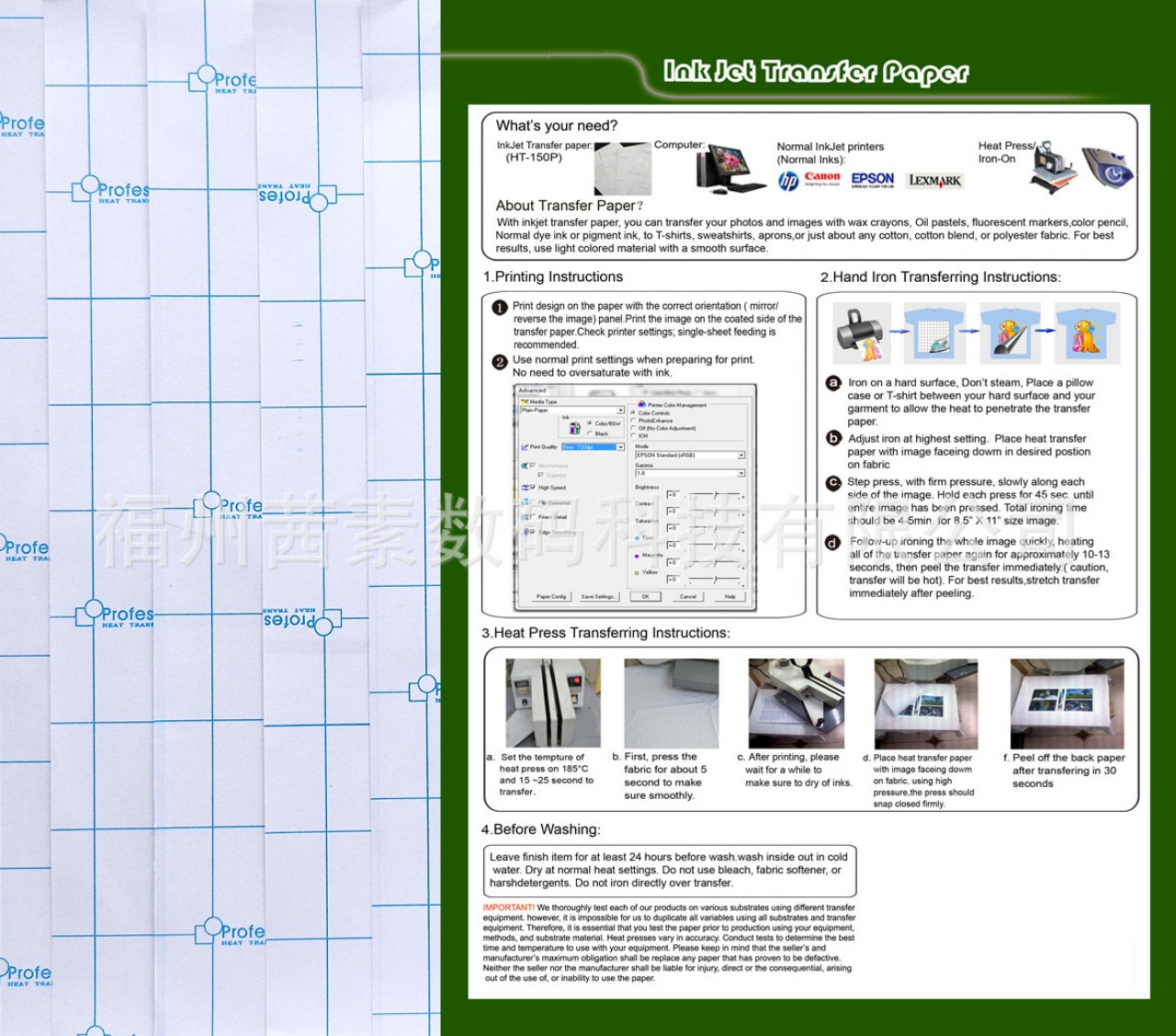 1, Giấy in chuyển nhiệt đặc biệt HT-150 Light inkjet transfer paper HT-150P, dùng cho các chất liệu sáng màu