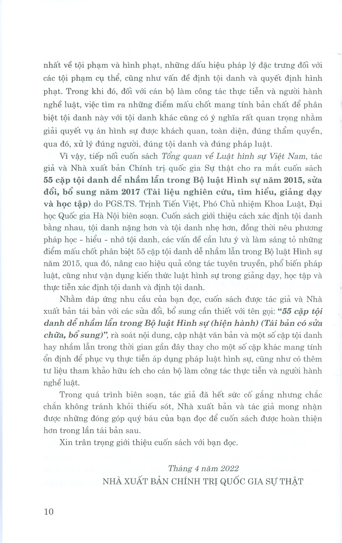 ✨55 CẶP TỘI DANH DỄ NHẦM LẪN TRONG BỘ LUẬT HÌNH SỰ (HIỆN HÀNH) (Tái bản có sửa chữa, bổ sung - Năm 2022)
