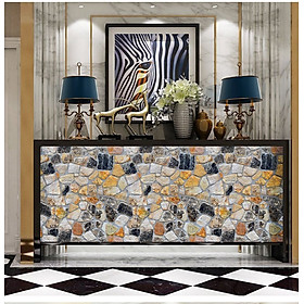 Mẫu giấy dán tường giả đá hoa cương màu trắng này có sẵn keo rồi, khách chỉ cần lột ra dán thôi. Chất liệu bền đẹp, không bám bụi, có thể lau chùi bằng xà