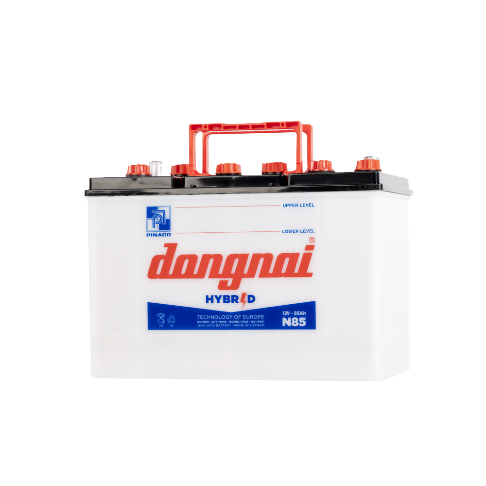 - Ắc quy được sản xuất theo công nghệ Châu Âu. Bản cực dương làm từ chì antimon giúp phóng điện mạnh mẽ, bền bỉ. Ít hao nước trong quá trình sử dụng. Ưu điểm vượt trội của Ắc quy xe tải Đồng Nai N85 (12V - 85Ah).