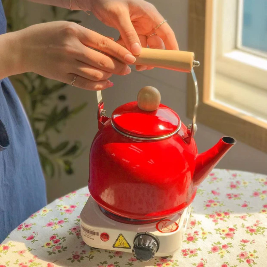 Ấm Đun Nước Bếp Từ Thép Tráng Men Lớn 3.3L Retro Kiểu Hoàng Gia – Tiện Lợi & Sang Trọng Chi Tiết Sản Phẩm: Kích Thước: 14 x 16 cm, thiết kế hình trụ tròn
