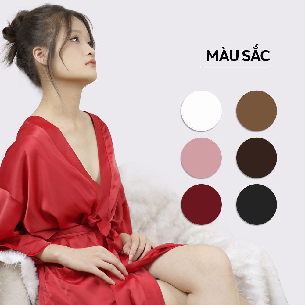 Áo choàng ngủ Jun & Mom vải lụa mềm mại, form chuẩn như hình_AC01