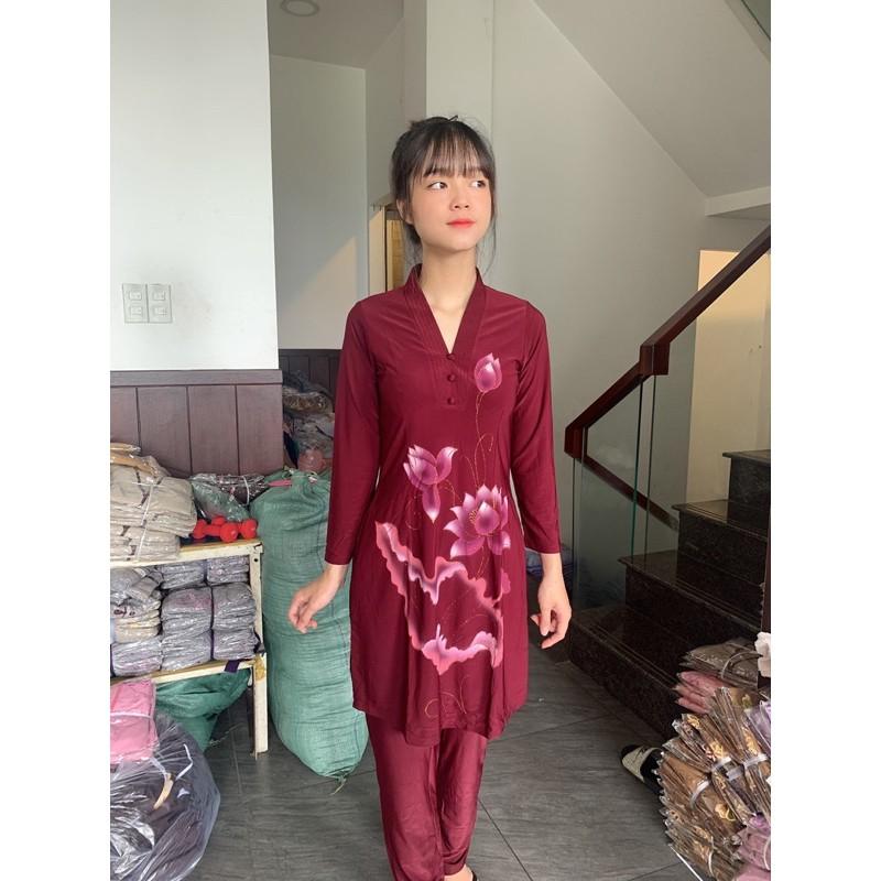 Bộ Áo dài cách tân đi chùa thêu họa tiết hoa sen. Mã sp CTDC 01