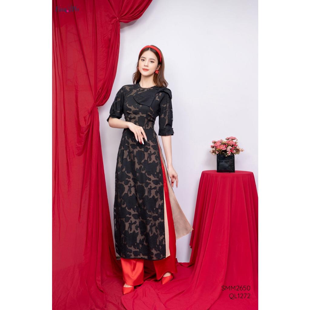 - Áo Dài chất vải nhung cao cấp, vải mịn, có độ co giãn nhẹ,,kèm quần dài lụa phía sau lưng thun mặc thoải mái -Thiết kế áo dài cách tân, phôm suông,chiết eo nhẹ,