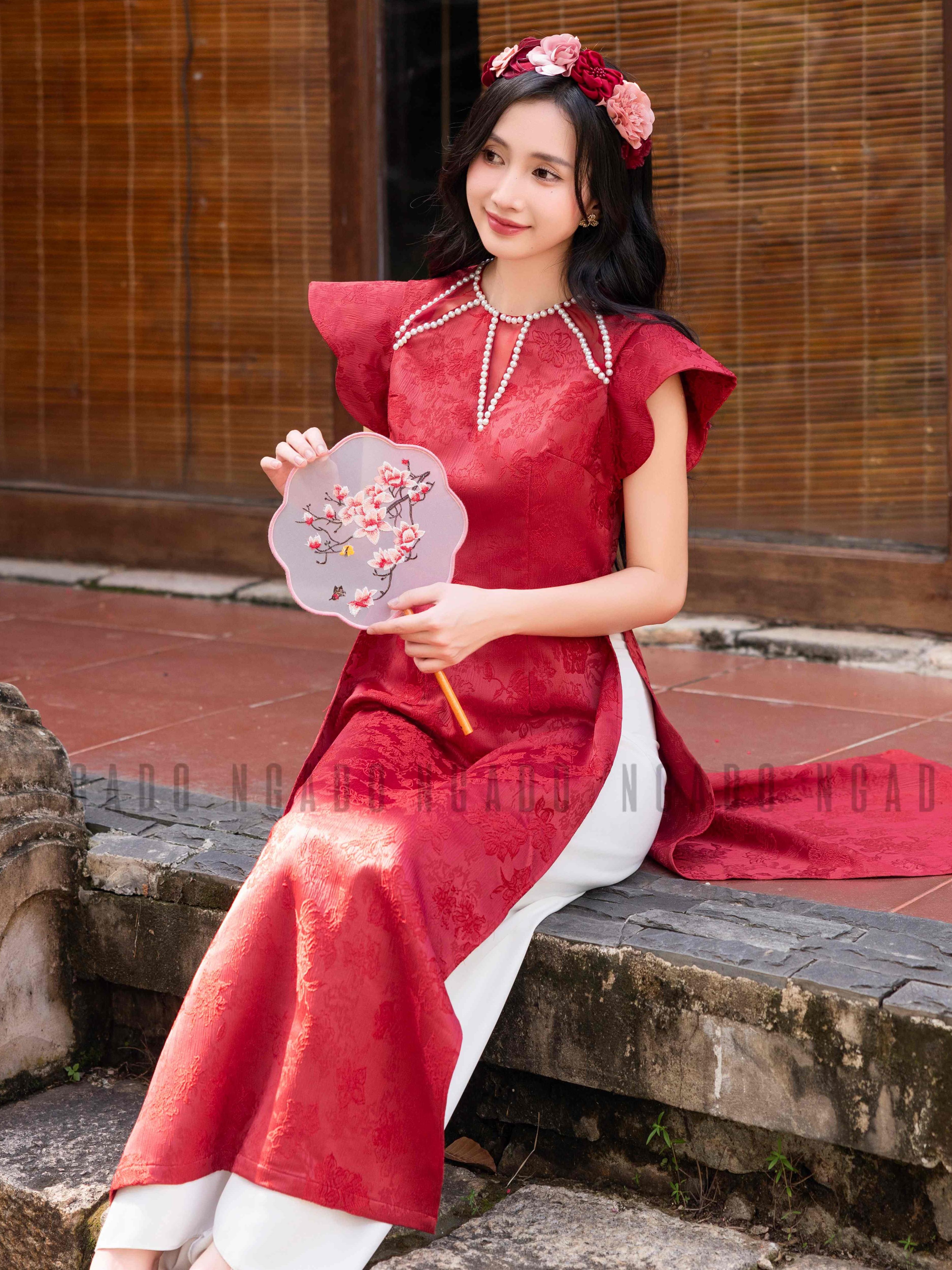 ✨Áo dài Cát Châu NGADO , áo dài đỏ , áo dài Tết