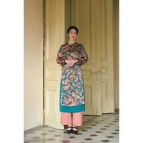 Thiết kế Áo dài nữ hồng vàng họa tiết hoa hồng cao cấp phong cách đường may tỉ mỉ. Áo thiết kế form vừa vặn giúp tôn được đường nét phong cách của các tính