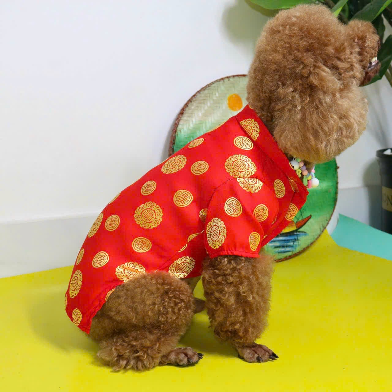 ÁO DÀI TẾT GẤM THÁI CAO CẤP TỪ 0.5-15KG DÀNH CHO THÚ CƯNG CHÓ MÈO 1. Thiết kế : Áo Tết gấm thái cao cấp, mát, bền, đẹp, dễ thương. In hình đồng tiền dễ
