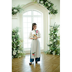 ✨Áo dài thiết kế trắng suồng kết hoa ( size L)