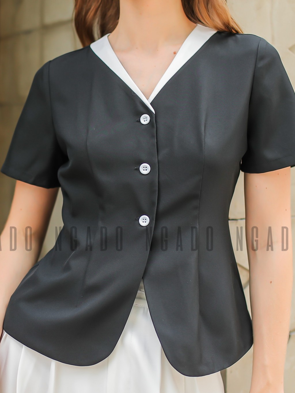 ღ THÔNG TIN SẢN PHẨM: Tên sản phẩm: Áo đen cổ viền trắng Màu sắc: đen Chất liệu: chất gân ý Chi tiết sản phẩm: không lót, không túi. Thông