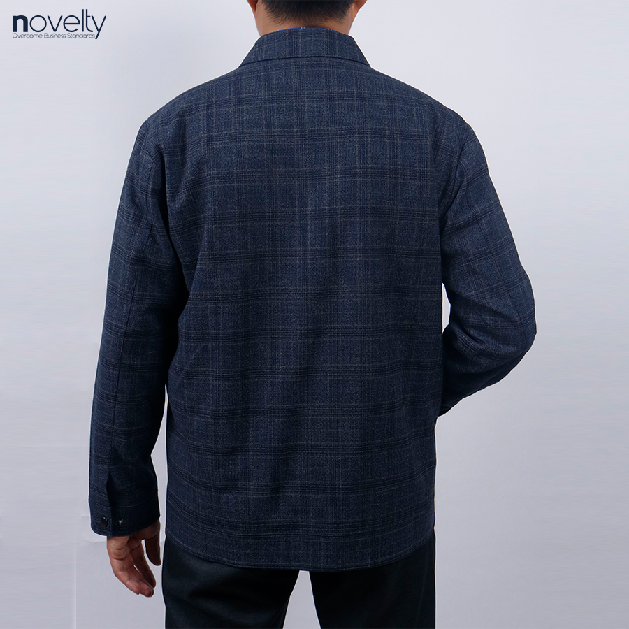 Áo Jacket nam 2 lớp cổ bẻ Novelty  Casual caro lớn xanh đen NJKMCLMT3B2305672