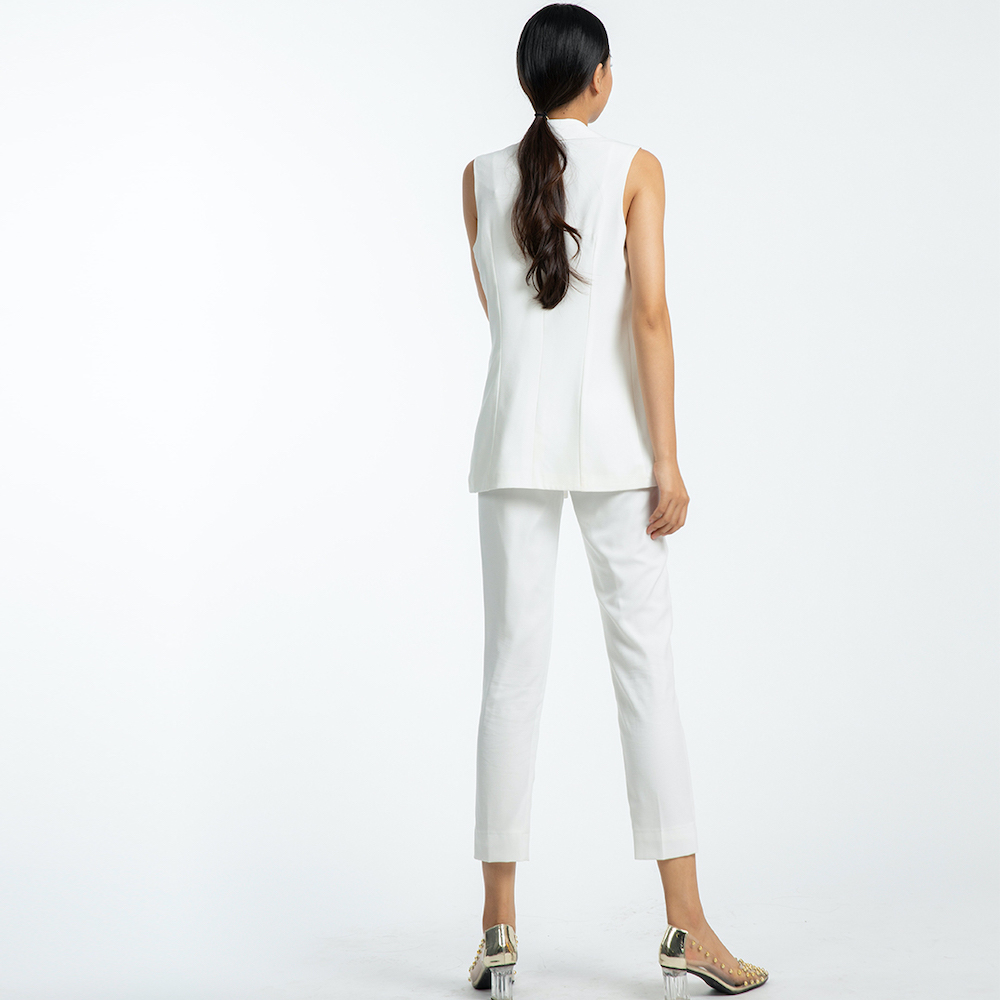 - đặc trưng nổi bật của chiếc áo khoác nữ này chính là thiết kế không tay trẻ trung