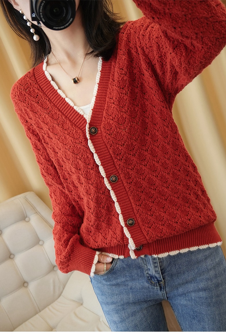 ✨Áo khoác len mỏng thiết kế cổ V phối cúc xinh xắn, thời trang thu đông mới AK02