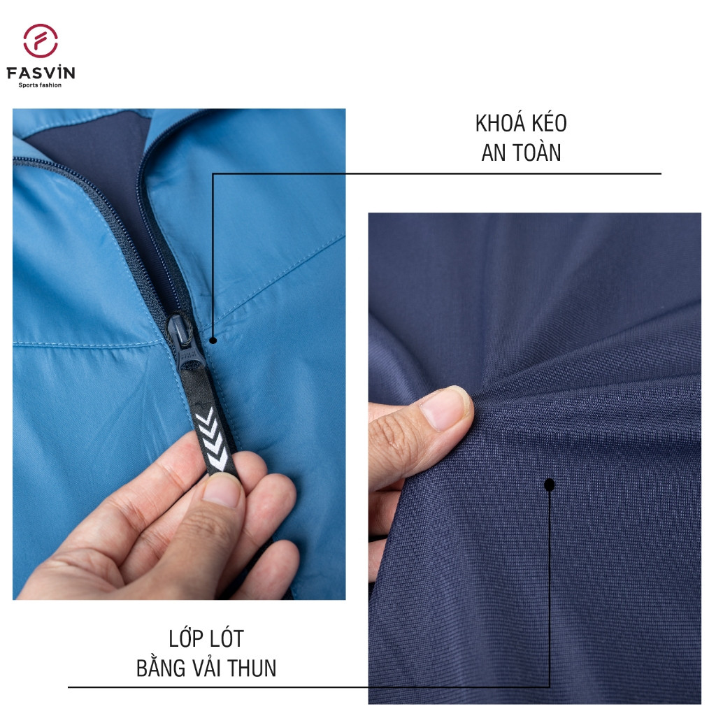 => Áo gió nam thể thao 2 lớp Fasvin chất liệu cao cấp mềm mại co giãn với quy trình thu hóa nghiệm ngặt. Các sản phẩm đều được những người thợ lâu năm trong