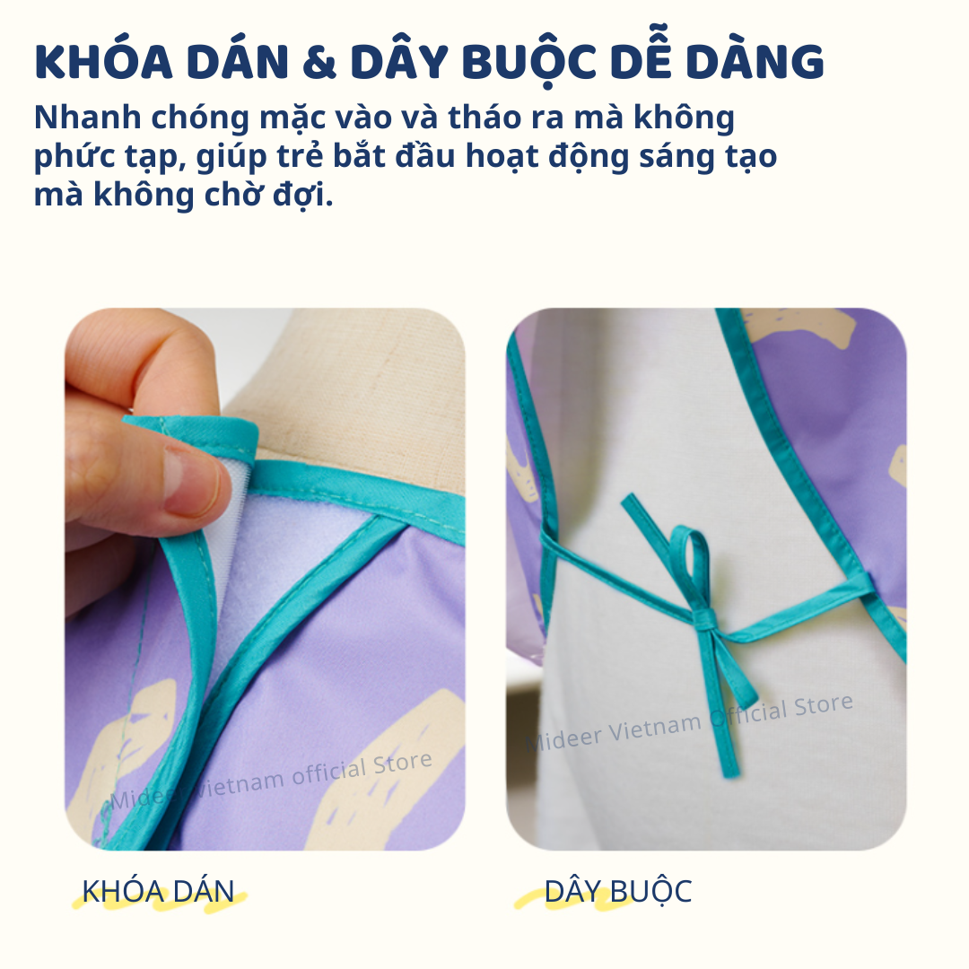 Mua tại TiktokCHÀO MỪNG BẠN ĐẾN VỚI MIDEER VIETNAM HÀNG SẴN SHIP HỎA TỐC, BẢO HÀNH CHÍNH HÃNG ————————————— Áo Vẽ Tranh Chống Bẩn Mideer Chống Nước Waterproof Art Smock - Hyacinth Purple Cho Bé học vẽ 10 Lý do ba mẹ nên chọn Áo Vẽ Tranh Chống Bẩn Mideer Chống Nước