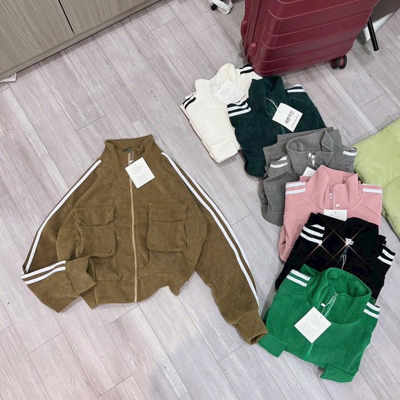 ✨Áo khoát nữ nhung Gân Túi Hộp Cổ Trụ Tay Viền 3 Sọc siêu chất thời trang-A2050
