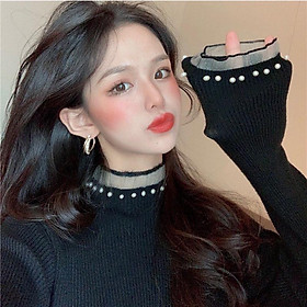 ✨Áo len cổ lọ ren đính ngọc thời trang gợi cảm cho nữ