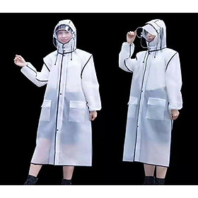 - Áo mưa thiết kế màu trắng trong suốt, có khẩu trang tiện lợi cùng tay cánh dơi rộng rãi giúp che mưa hiệu quả mà không vướng víu khi chạy xe. - Được làm