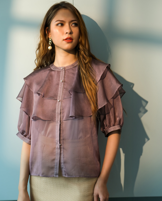 Áo Organza Mường Hoa TOP181 thời trang thiết kế Hity Bí ẩn như một thỏi nam châm huyền bí tỏa ra vẻ đẹp thanh lịch và quyến rũ - màu tím khói Màu tím khói