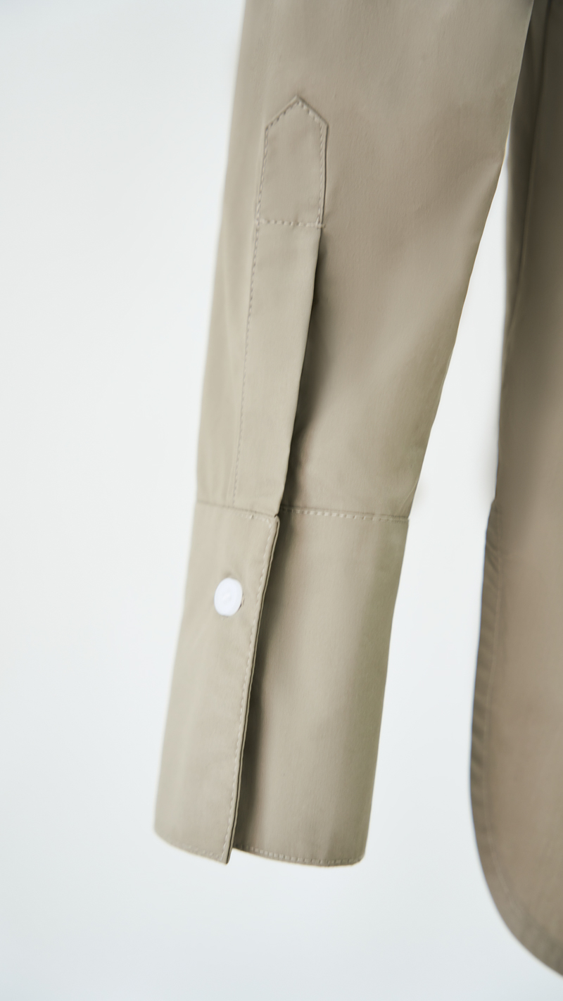 CHẤT SOMI COTTON PHA, MỀM ĐỨNG PHOM ÁO MÀU XANH LÁ ÁO CỔ SOMI, TAY DÀI, NÚT ĐEN PHOM CĂN BẢN SUÔN ĐIỂM NHẤN PHẦN LÁ CỔ, NẸP ÁO, MANGSET BẰNG VẢI HOẠ TIẾT KHÁC