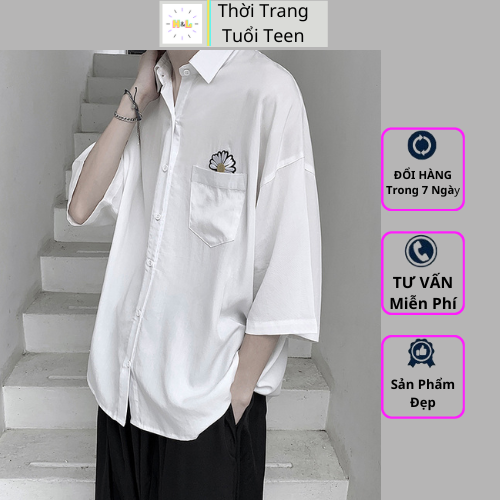 Mua tại TiktokÁo sơ mi rộng có TÚI HOA CÚC trắng đen UNISEX tay ngắn