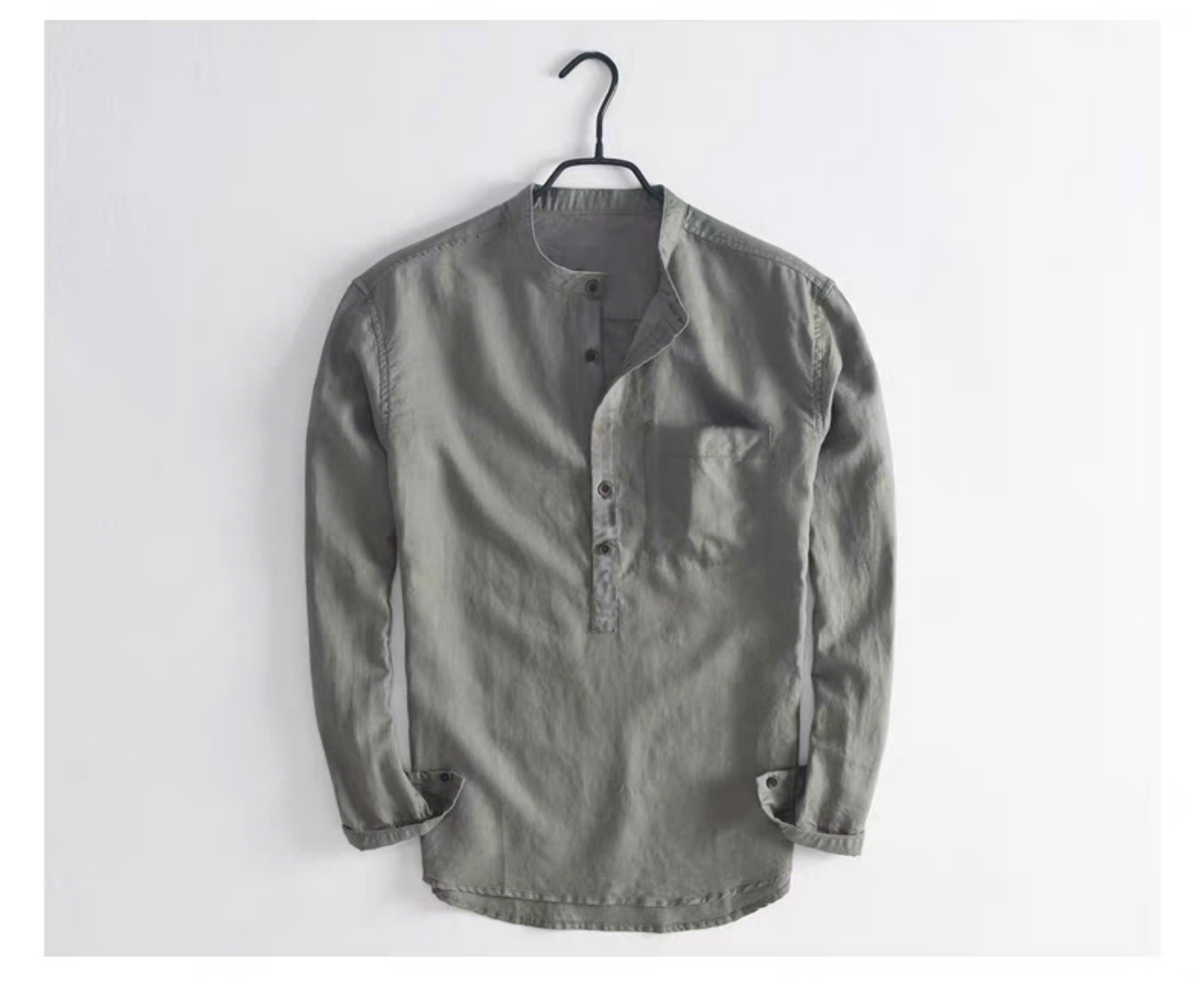 MÔ TẢ SẢN PHẨM 1. Tên sản phẩm: Áo Sơ Mi Nam Dáng áo: form suông Chất vải: Vải Linen thô cao cấp Họa Tiết: Trơn Hướng dẫn chọn size: SIZE M: < 60 Kg