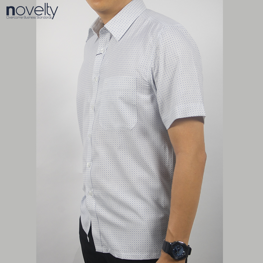 [HÀNG VIỆT NAM] Áo Sơ Mi Nam Ngắn Tay Vải Cotton Họa Tiết Chấm Bi Nhỏ Màu Trắng Anton - 808