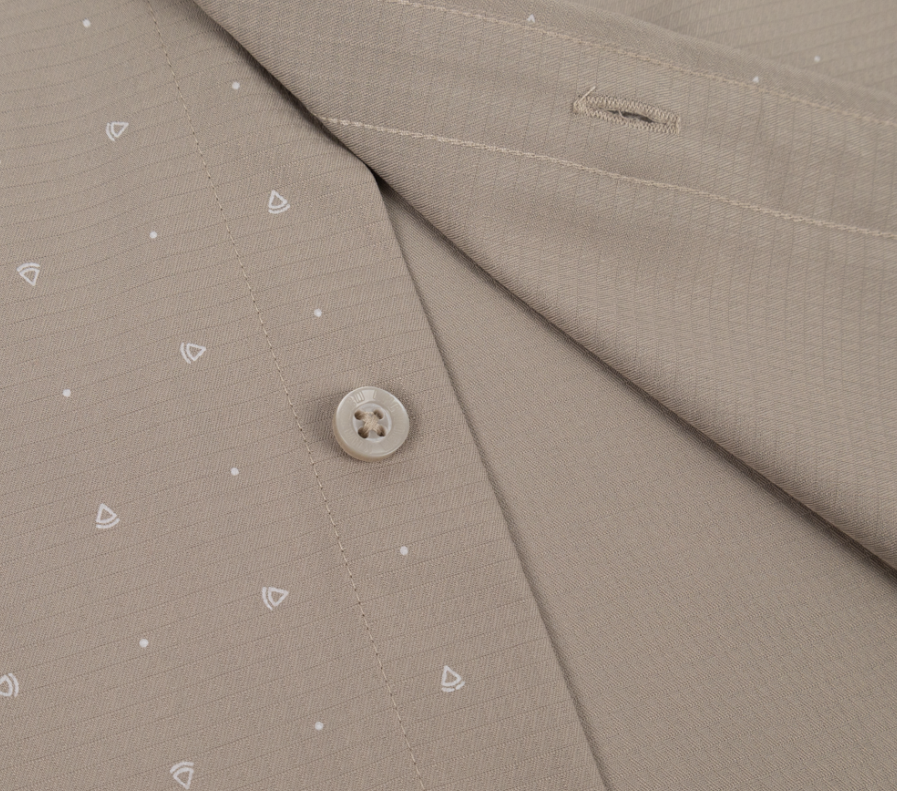 ÁO SƠ MI NAM TAY NGẮN KHATOCO - TAILOR FIT Kiểu dáng: Tailor Fit - Ôm nhẹ, tôn dáng, lịch sự Màu sắc: Be sáng (họa tiết tam giác nhỏ trắng, tinh tế) Size: L – XL – 2XL ️ Thương hiệu: KHATOCO – Hàng Việt Nam chất lượng cao