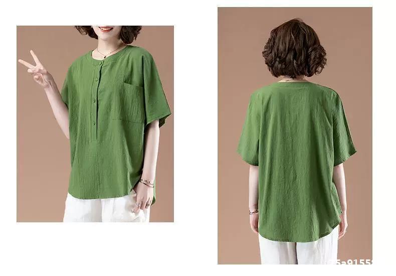 - Tên sản phẩm: Áo sơ mi nữ kiểu tay ngắn cổ tròn, chất liệu Đũi tơ thấm hút mồ hôi, áo sơ mi form rộng nhiều màu.