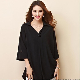 ÁO SƠ MI NỮ TƠ GÂN VẠT BẦU Kiểu dáng: áo sơ mi cổ nẹp, tay lỡ, vạt bầu Chất liệu: tơ gân Size: (45~59kg ngực 95 dài 70)