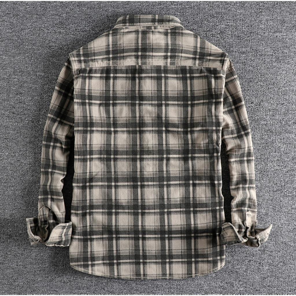 Áo sơ mi vải nhung phong cách Retro_Biker_Army Áo sơ mi Wild Casual Màu đang hot lắm ạ Chất vải nhung karo cực bụi , phom chuẩn mặc rất đẹp ạ Size: M: từ 55-65