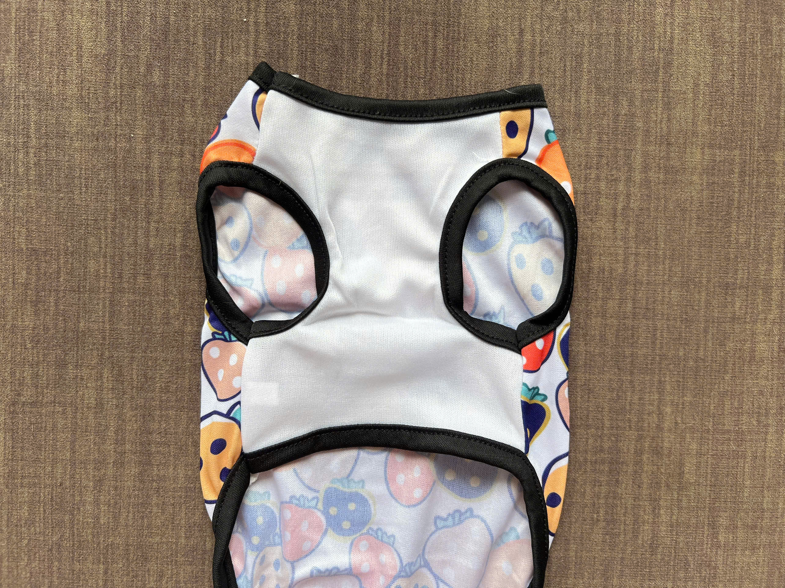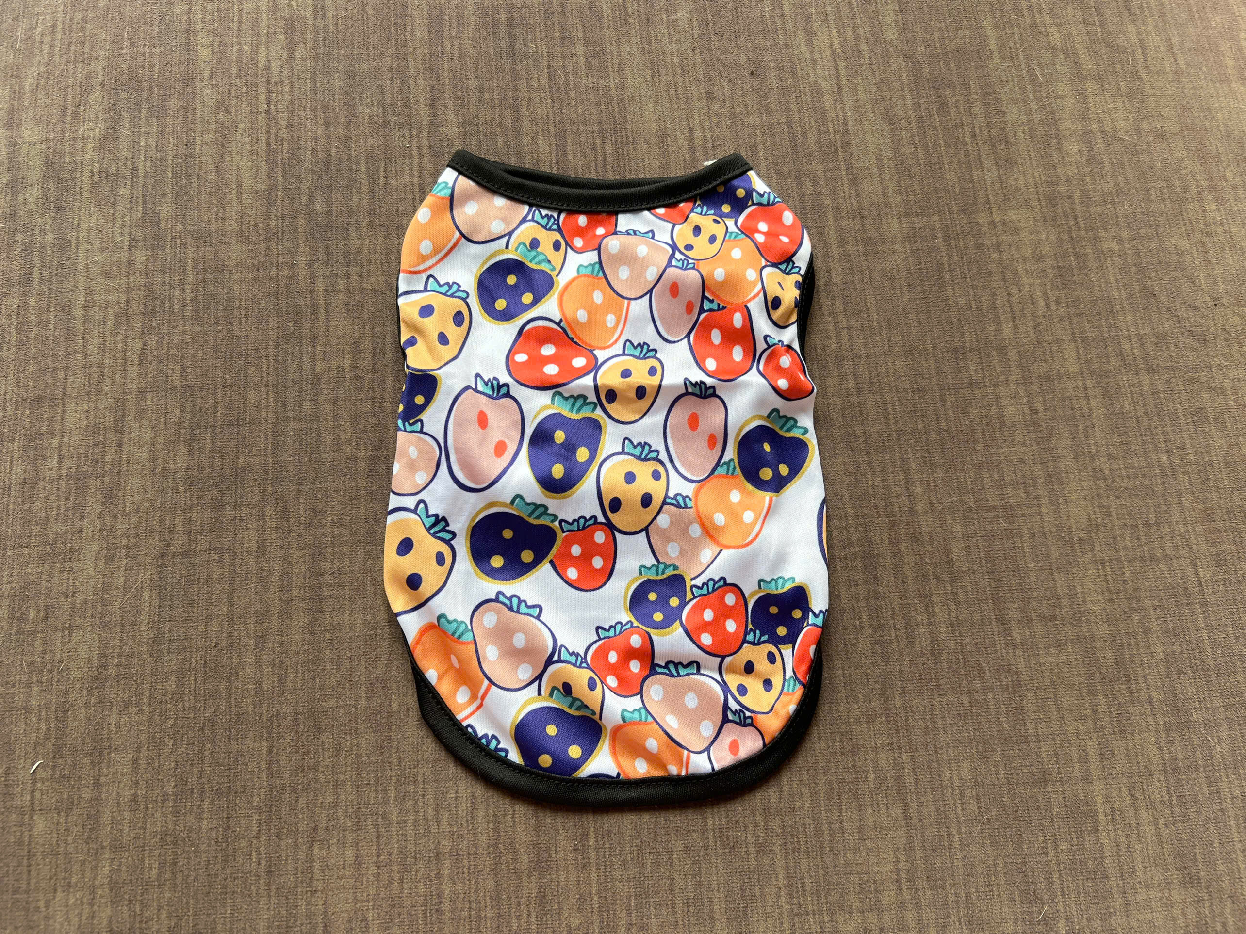 ÁO THUN BA LỖ DÂU TÂY THÔNG HƠI SIÊU DỄ THƯƠNG TỪ 1-5KG DÀNH CHO THÚ CƯNG CHÓ MÈO 1. Thiết kế : Áo thun thông hơi cá tính, dễ thương. In quả dâu tây
