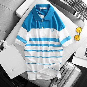 ✨ÁO THUN NAM TAY NGẮN CÓ CỔ PHỐI SỌC ĐỘC ĐÁO LOGO THÊU LỊCH LÃM - LZPS144