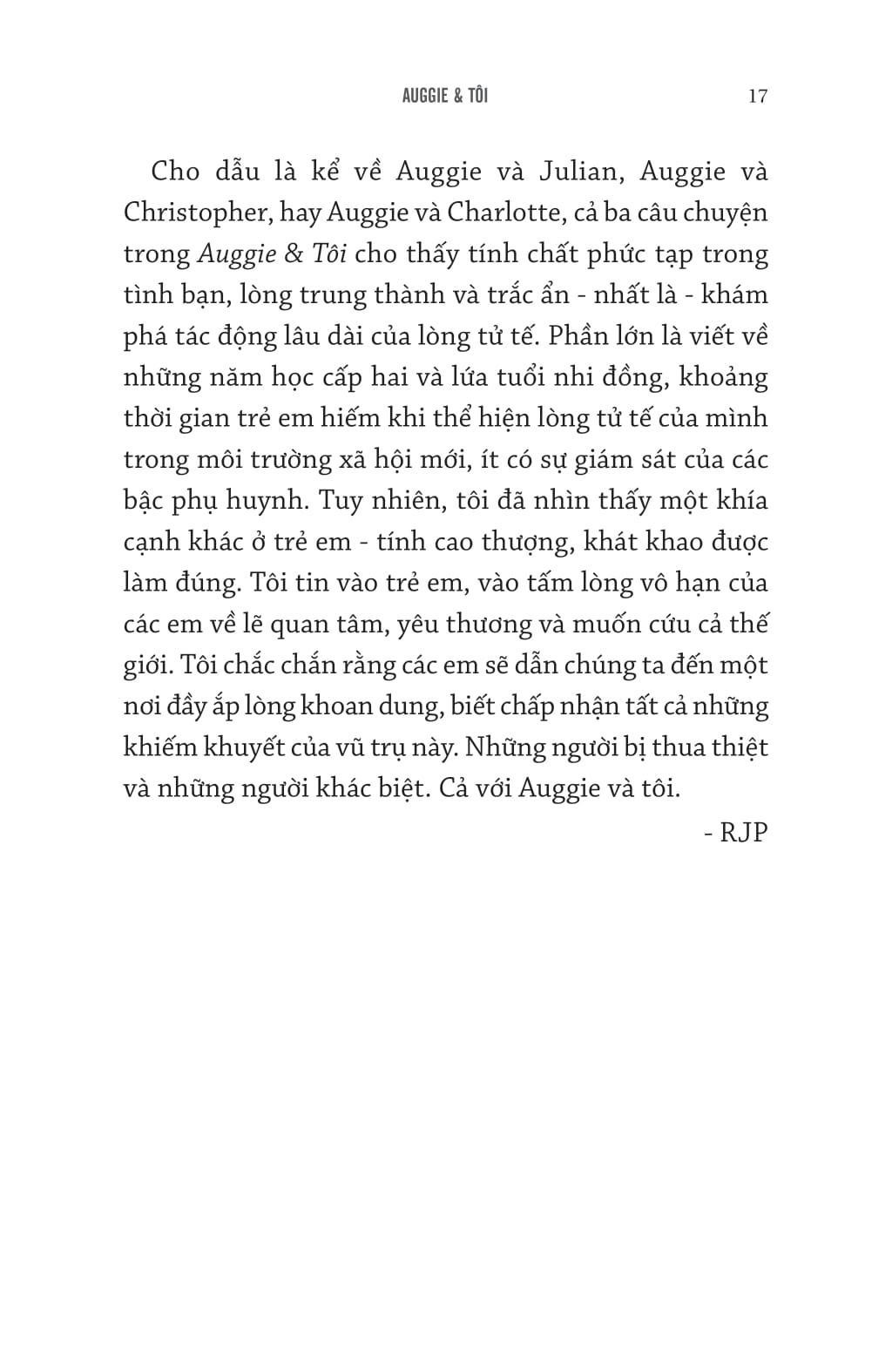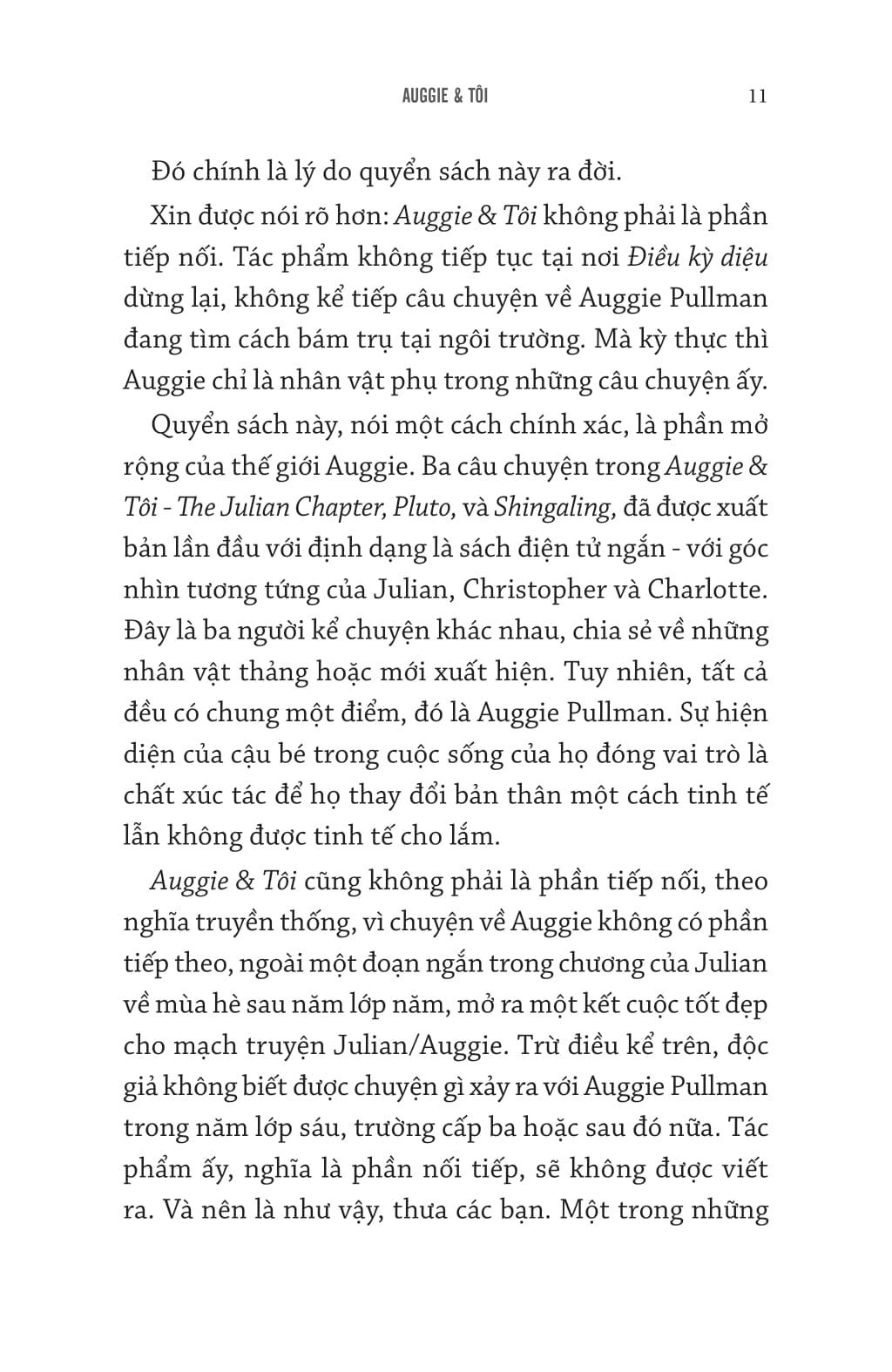 Tác phẩm đặc biệt này dành cho những độc giả mong muốn được đắm chìm nhiều hơn nữa vào thế giới của Auggie.