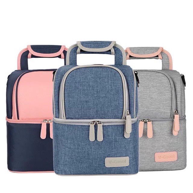-Có 3 màu sắc trang nhã và sang trọng. các mẹ khỏi băn khoăn lựa chọn túi giữ nhiệt vừa không đẹp lại vừa không giữ lạnh tốt nhé. Giải pháp là đây rồi. giá quá hợp lý và lại cực kỳ sang trọng nữa, có thể mang đi chơi, đi giã ngoại, đi làm, 2 ngăn có thể vừa đựng máy hút sữa, vừa đựng bình sữa hay mỹ phẩm, sữa chua, nước ép hoa quả lạnh.